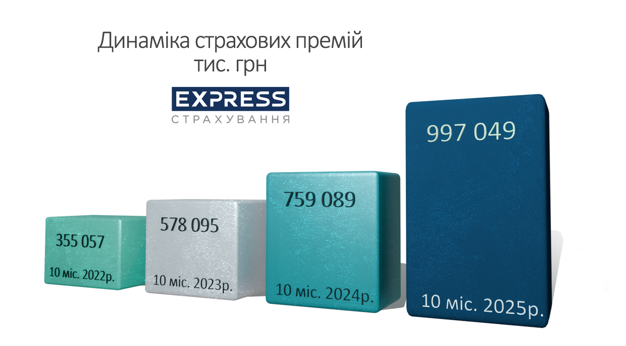 «Експрес Страхування» завершила 10 місяців року з преміями, що сягнули майже 1 млрд грн